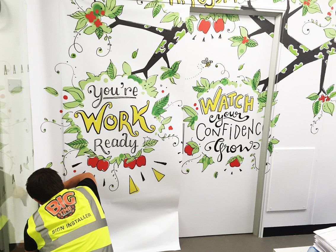 meeting rooms, reception, entrance, hallways, lifts, kitchens, rest rooms, desks, pos, cafeteria, board rooms, communal areas, inspirational, historical, directional, motivational, company ethos, decor, design, colour