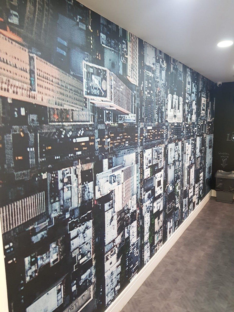 When we think of office digital wallpaper graphics we think: wall graphics, digital printed wallpaper, wall wraps, wall vinyl, bespoke wall prints, personalised wall feature, nature, interest, hobbies, textures, material effects, collage, murial, colour, theme, decal, design