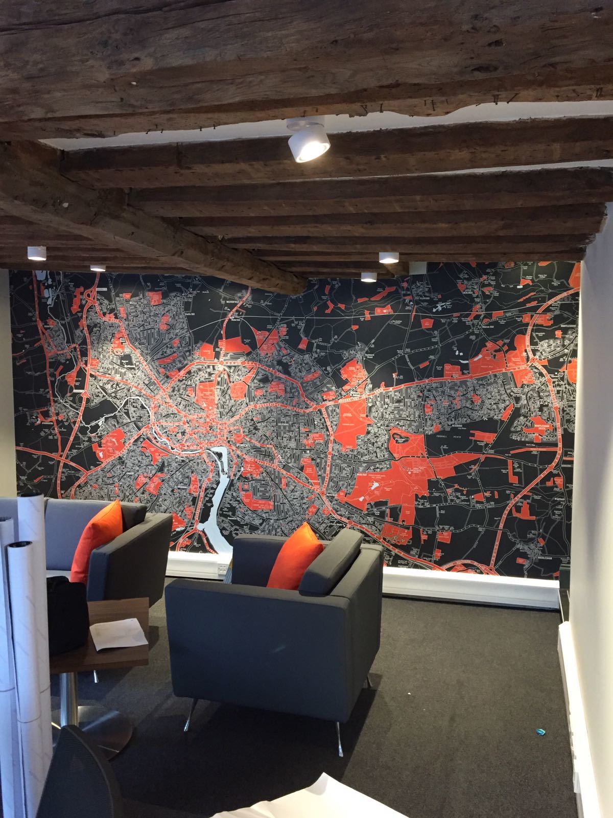 When we think of office digital wallpaper graphics we think: area, location, geographic, topographical, neighbourhood, county, brand & logo awareness, coprorate colours, high impact, interior design, influence, district, lifestyle, aspirations, fashion, style, attract, first impressions